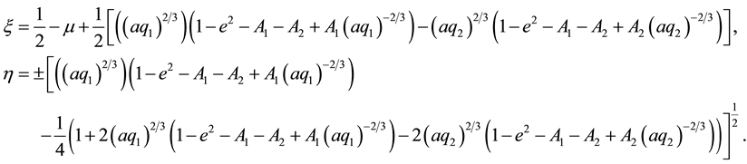 The eccentricities of the ellipses are given by (Szebehely 1967)