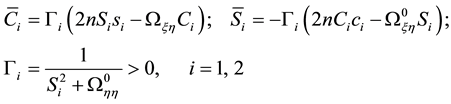 Table 5. Frequencies of the long and short periods, their eccentricities, semi-major and semi-minor axes of the binary System Algol, for assumed oblateness and a = 0.999; e = 0.2.