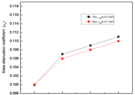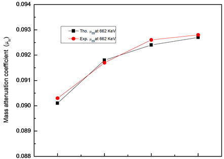 Theoretical values of the mass attenuation coefficients of mixture or compound have been calculated by WinXCom, base on mixture rule [22]