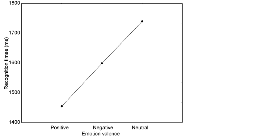 For typical participants’ data to be included in the analysis, they should have had at least 90% of correct hits. Here, a within ANOVA was carried on over a three experimental conditions data (Positive words, negative words and neutral faces). As expected a significant main effect was obtained for the stimuli valence factor F(2, 2) = 65,29, p = 0.01 (see Figure 2).
