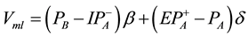 Money laundering based on transfer pricing (Vml) is equal to the sum of capital flight (Vcf) and tax evasion(Vte). Tax evasion is mainly composed of business income tax evasion (Vie) and import tariff evasion (Vde) [16] -[18] . The following analysis will also consider the factors of fraudulent VAT export tax rebate (Vvat), but does not take the effect of preferential policies related to barter trade into account. So the equation of Vml is: