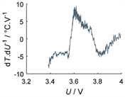 The derivative of voltage above the derivative of temperature could be used to describe the reaction entropy ∆rS [51] .