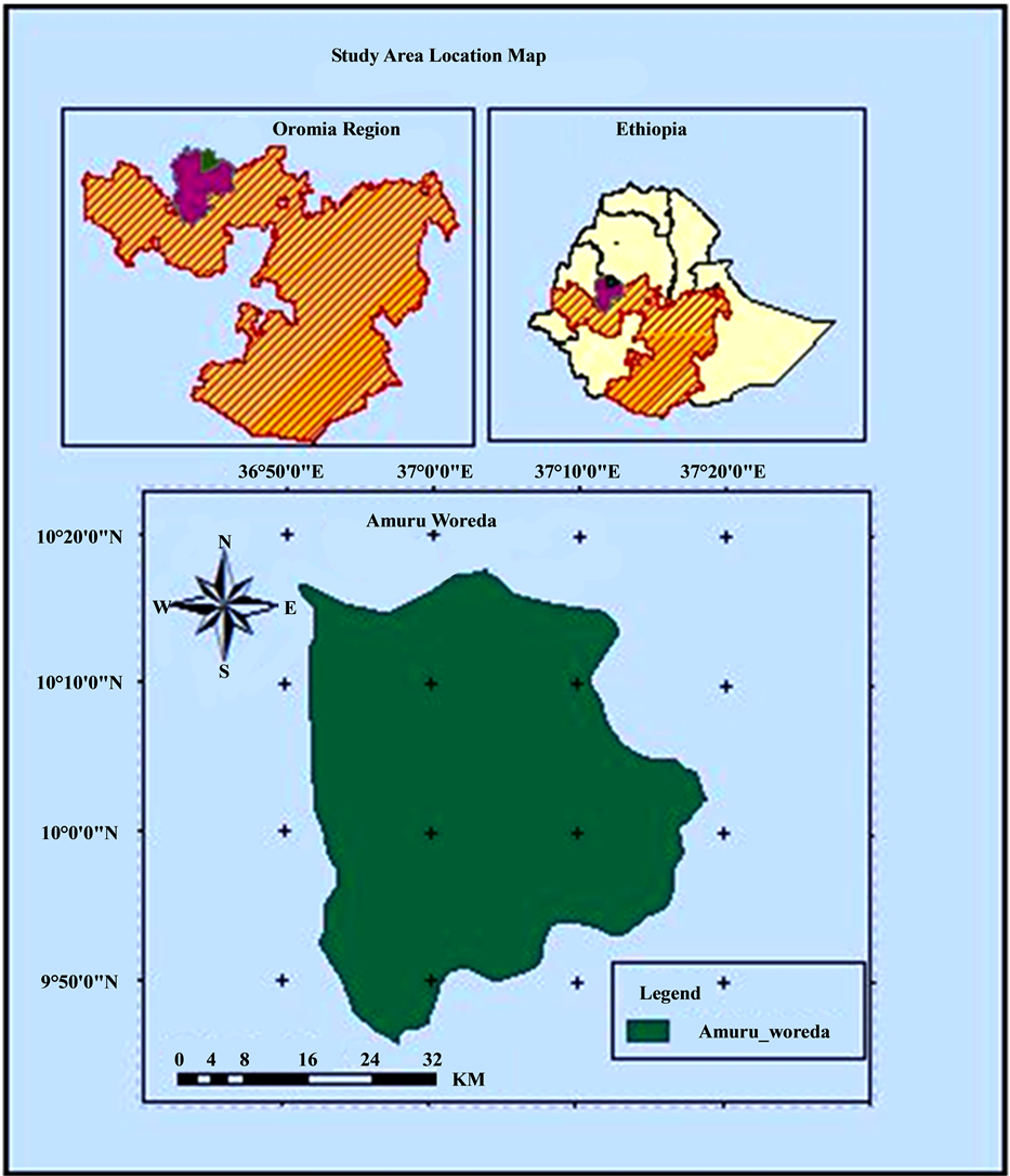 Figure 1. Location of the study area Amuru town, Wollega zone, Oromia region, Ethiopia.