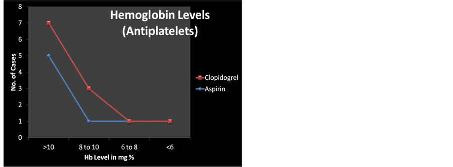 One case (8.3%) had severe anaemia with Hb < 6 gm% in the antiplatelet users [27] (Figure 4, Table 4).