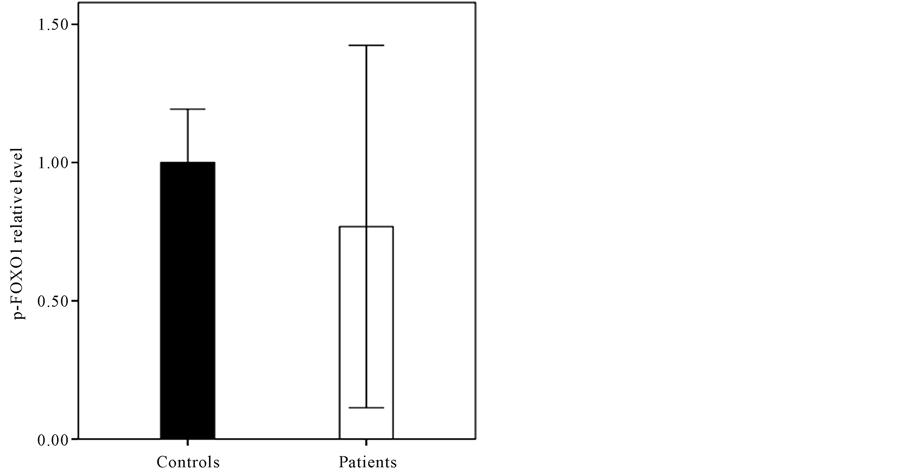 Statistical analysis was performed using the Statistical Package for Social Sciences (SPSS Inc., Chicago, IL, USA). Kolmogorov-Smirnov test was used to assess the normality of data distribution. Data were expressed as means ± S.D and were statistically analyzed by using independent sample t-test and one-way ANOVA. It is worth to report that nonparametric Mann-Whitney and Kruskal-Wallis analysis was used for FOXO1 and p- FOXO1 assay because the achieved data for FOXO1 and p-FOXO1 level did not have normal distribution. The differences of nominal variables between two groups were assessed by χ2 test. Statistical significance was set at p < 0.05.