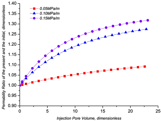 Combined Equations (3)-(5) with Equation (6), the formation permeability variation will be taken into consideration in the mathematical model for fluids flowing in porous media, i.e., the coupled mathematical model for formation parameters variation is established.