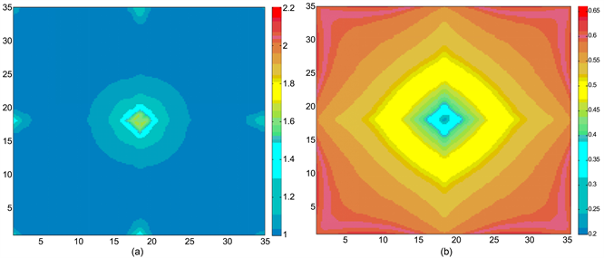 Take the conceptual model with permeability ratio of 1 and 5 for example. When the water cut reaches 90%, the permeability distribution and remaining oil distribution of the 2nd and the 12th layer are shown in Figure 8 and Figure 9 respectively.