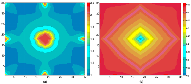 Take the conceptual model with permeability ratio of 5 for example. When the water cut reaches 90%, the permeability distribution and remaining oil distribution of the 10th layer is shown in Figure 6. However, when the variation of