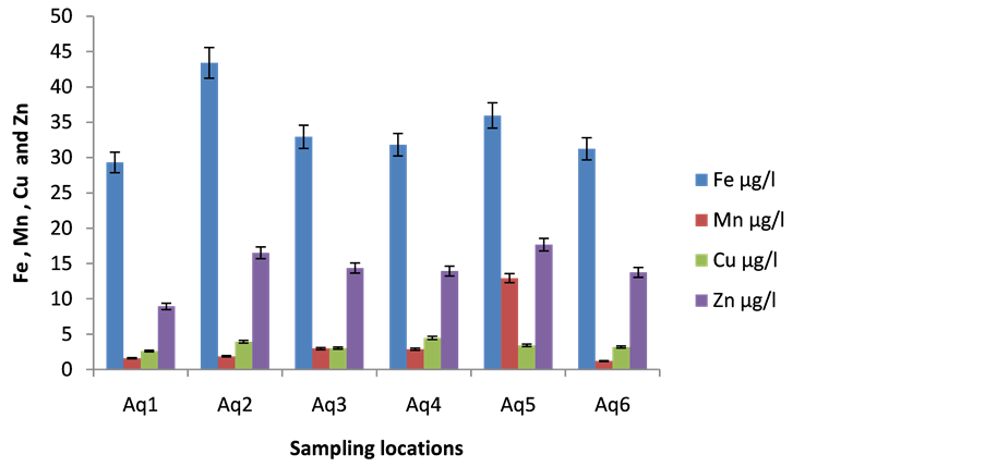 Within rapid industrialization and economic development in coastal areas around the world heavy metals are introduced to the coastal environment [3] [6] [66] [79] - [81] . Heavy metals are one of the most common pollutants which have severely deteriorated the aquatic ecosystems and can be hazardous to the local population which uses the coast area for fishing and recreation activities [3] [6] [15] [66] due to the toxicity, abundance, persistence, and subsequent bio-accumulation. Their release in aquatic ecosystem is triggered by both natural and anthropogenic processes [82] - [85] . Because of the non-degradability of heavy metals, toxic effects are often observed at points far away from the sources [86] . Variations of dissolved metal concentrations, i.e. Fe, Zn, Mn, Ni, Cu, Cr, Cd, Pb, and Hg in sea water samples from the investigated area revealed quite low concentrations (Table 6). The results of the present study indicated