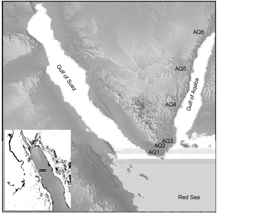 Figure 1. Locations of sampling sites along the coast of the Aqaba Gulf.