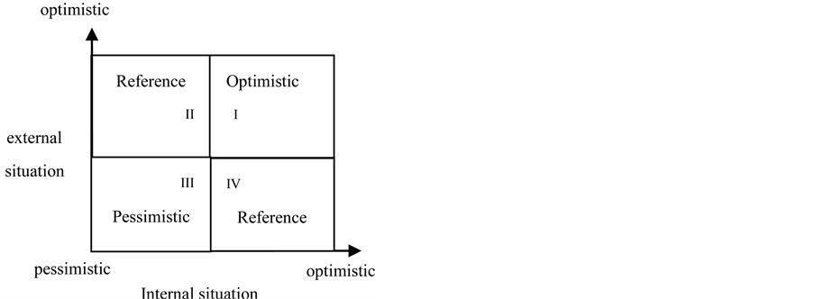 Based on combination of scene hypotheses about recent international, domestic and local economic development situation, we can identify several prediction schemes as shown in Figure 8. The best “optimistic” scene (quadrant I) is possible when optimistic changes occur concurrently in international, domestic and surrounding situations in Shenzhen; “mesoscopic scene”―“reference scene” (quadrant II) is possible when the international situation is pessimistic, while domestic or surrounding situation is optimistic; the worst “pessimistic” scene (quadrant III) is possible when the international situation is pessimistic, while domestic or surrounding situation is also pessimistic. “mesoscopic” scene―“reference” scene (quadrant IV) is possible when the international situation is optimistic, while domestic or surrounding situation is pessimistic. The specific scene design is as shown in Table 6.