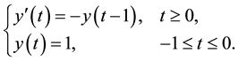 In this section, four examples are given to show the performance of the DTM based on the method of steps. First, we want to solve the following simple but classical DDE to further illustrate the process of DTM.