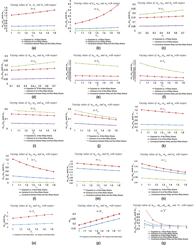 Figure 1(q) exhibited that, average number of Risky Asset’s Shares and Safety Asset’s Shares, variance of Risky Asset’s shares and variance of Safety Asset’s shares; Co-variance of Risky Asset’s Shares with Safety Asset’s shares are decreasing functions of time t.