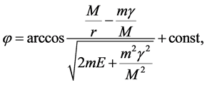 Later on we’ll use first term in (3) only because such potential energy leads to a closed trajectory that corresponds to the real observations of dwarf galaxies’ movement. Consequently, based on the conservation laws of energy and momentum for the test body dynamics, its trajectory can be write down in the standard form