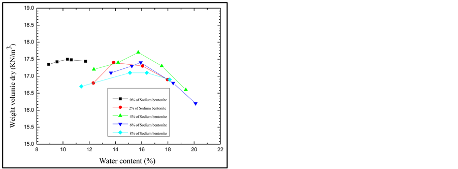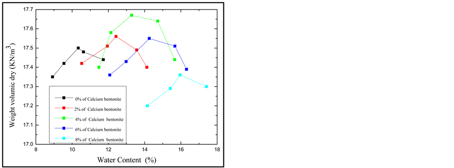 Being incompressible, it absorbs a significant amount of compaction energy, which prevents the particles of the mixture to adopt a more dense structure [20] . This reduces the inter-granular mixture’s friction, which in their turn lose contact with each other, when the compaction is carried out on the wet side [21] .