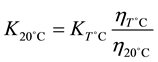The permeability coefficient depends on the fluid viscosity: when the viscosity increases, the flow decreases, and vice versa. It is therefore appropriate to bring back the calculated values of permeability K, at a reference temperature, when the measurements are performed at various temperatures [16] .