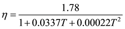 hT˚C: The dynamic viscosity at the temperature T (˚C).