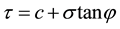 For each shear box test type, three normal stresses are used 100, 200 and 300 KPa. The C and φ values are determined graphically, according the following Mohr-Coulomb equation.