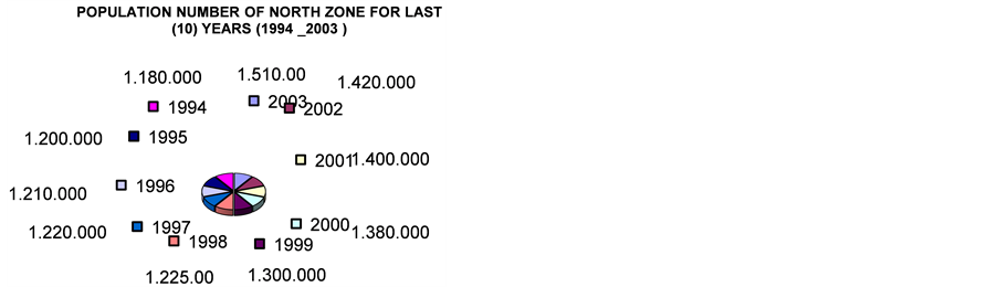 Figure 5. Graph shows the percentage distribution of the population showing the number of residents of the northern region during the period of ten years from the year 1994 to the year 2003. Ref/The documentation of GIS department project 2000-2004.