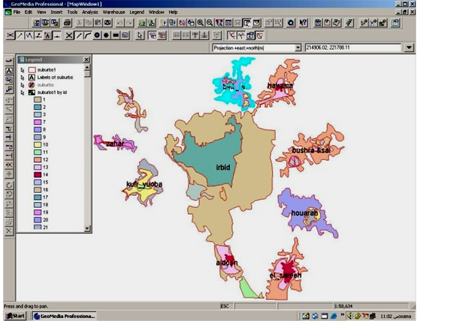 And we will study the north and the province of this study include the city of Irbid and the surrounding villages from all sides, they called it together Greater Irbid Municipality (Figure 4 shows the north districts [2] ) and the planned facility demonstrates that through GIS software used in Irbid Municipality.