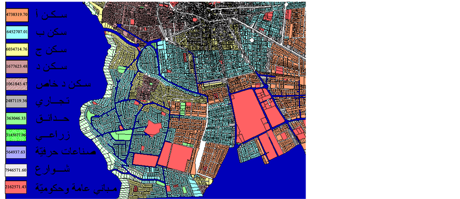 Another area of areas of the city of Irbid, between an area Bayada and Baitras (Figure 21 [1] ) entrance of the city of Irbid North is the area has been studied through the software of geographic information systems for the provision of commercial services have been set up trade center for fruits and vegetables in it, which has helped to reduce the movement of people in the region and nearby areas of the city center shopping where they are in the process of shopping the old city center (Alhesbeh) in the past, which increases in congestion traffic. We can also watch spatial voids that can be handled by the area where the need can be expropriated from the statement of the part numbers involved and identify the names of the owners to make the process of acquisition.