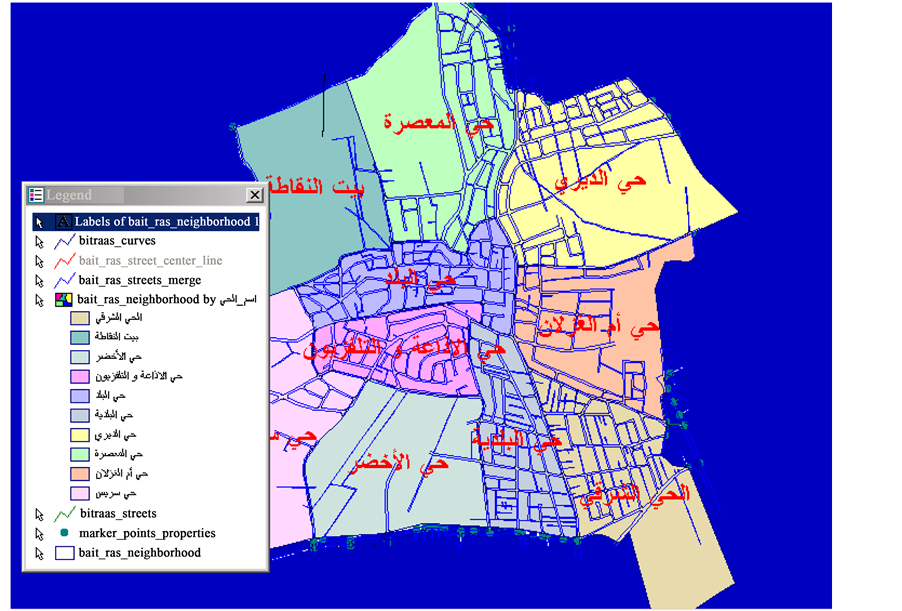 The ability of this program and its efficiency are measured by the accuracy and integrity of the data that feed them; we can notes that the threads derived from within these different regions with special nature of urban confusion and random organization (Figure 1 shows compilation of different layers [1] ). All planes and sheets in relating departments are inaccurate.