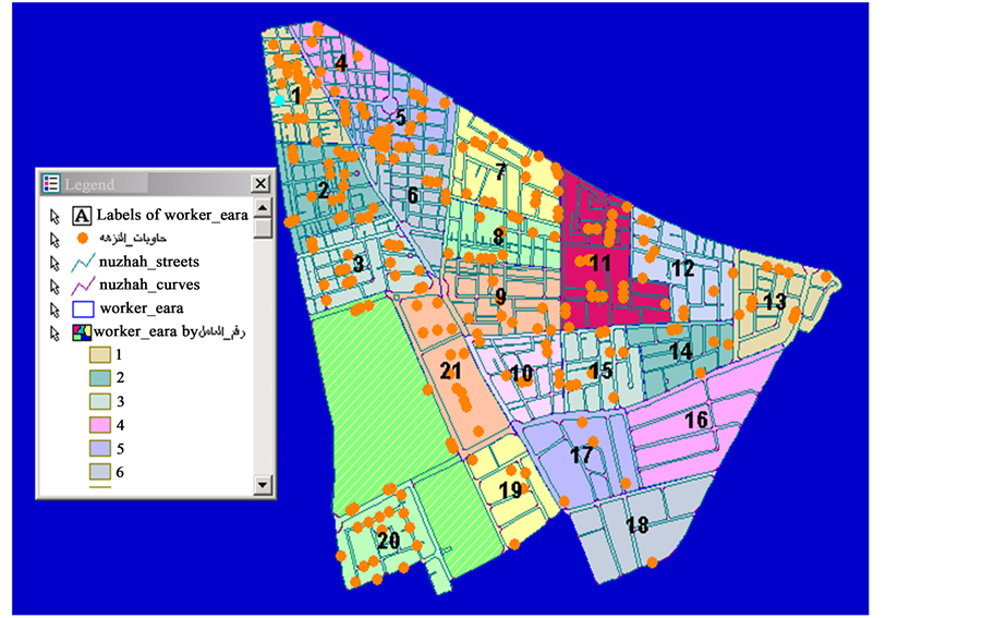 Rather, the geographic information systems has become one of the important components of activities applicable in the current layout, where deals planners with a lot of institutions and the relevant departments in the field of service sectors such as Foundation water and electricity companies and telecommunications and public security, health and many other sectors (Figure 2 shows the places of containers presence and distribution of