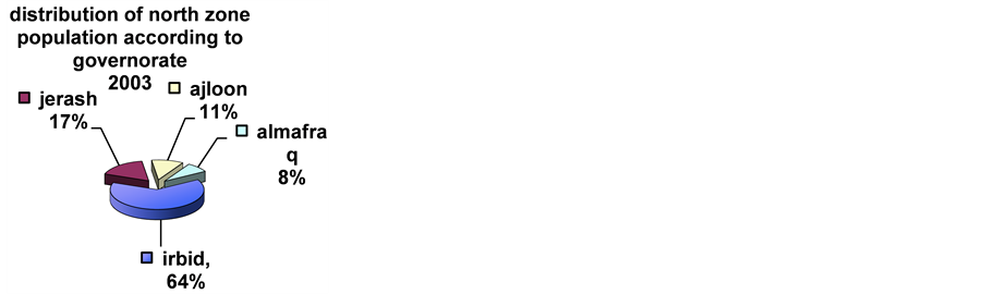 Figure 6. Graph shows the percentage distribution of the population in the provinces of North statistical graphs showing the number of residents of the northern region during the period of ten years from the year 1994 to the year 2003 [3] Department of statistics 2002.