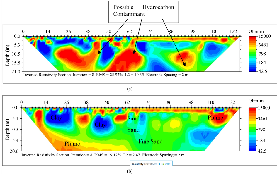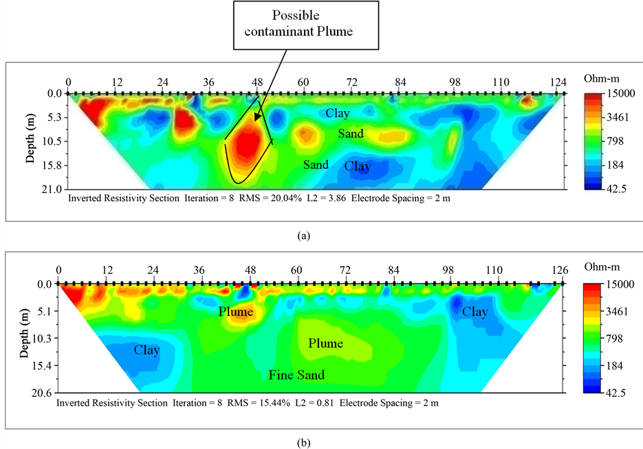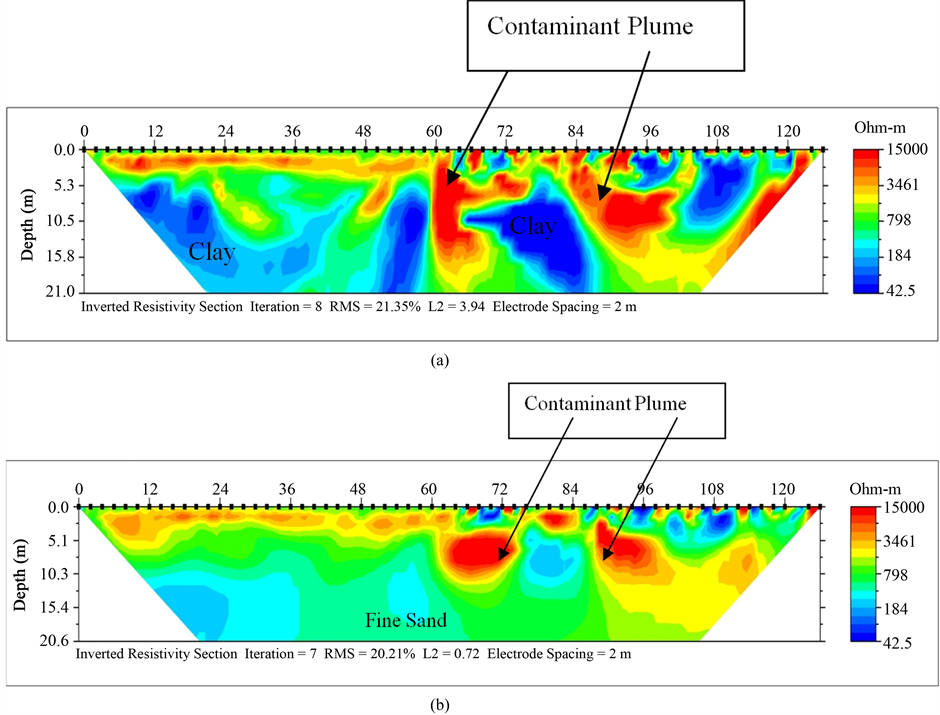 The behavior of the electrical resistivity of contaminants, with respect to the host environment, depends on several factors, such as the host lithology, the moisture and the solubility of the contaminants in the groundwater. They make the 2-D ERT effective in delineating the contaminated zones due to resistivity contrasts. Fresh organic compounds in the water saturated soils usually have high electrical resistivity values.