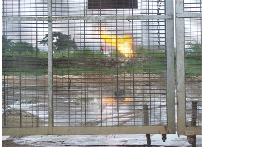 Figure 2. View of gas being flared at a flow station near the survey site in Sapele (Field Survey, October 2012).