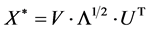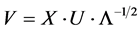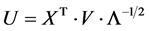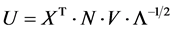 The unit matrix Iq is again a diagonal matrix: its non-zero elements are all 1 and are all along the diagonal from the top-left to the lower right of this square matrix. The “left-inverse” of the matrix U is identical to its transposed version UT (see above). We will thus use these as being identical below. We will use for example: (UT)−1 = U.
