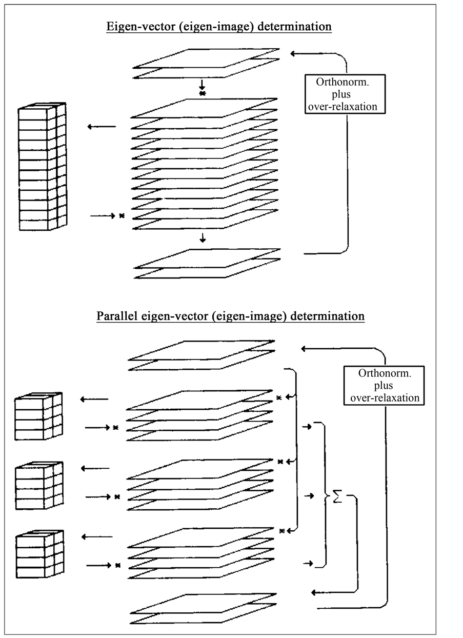 What was “massive” in this context was a very relative and very dated concept: at the time we had less than 64 images of 64 × 64 pixels = 4096 pixels each; that is a total data set size of less than one megabyte (each image being 16 Kbyte in floating point format). An uncompressed picture from even the cheapest digital camera today is much larger than one megabyte! However, it was characteristic for those early days in computing, that the 16-bit PDP-11 computer would only address 216 bytes = 64 Kbytes. It was thus difficult to fit any “major” computational problem in the central memory of such a computer! The critical memory requirement in our case was the “core” needed for the square variance-covariance matrix (see main article) which, for 64 images would already occupy 16 Kbyte of the precious available address space.