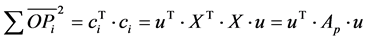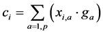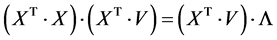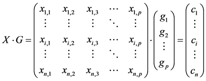 This sum is identical to the correlation or inner product calculation presented above for the case of the Euclidean metrics (Equation (1)). Explained in words: one here multiplies each element from row i of the data matrix X with the corresponding element of vector G to yield a vector C, the n elements of which are the correlations (or inner products or “projections”) of all the images in the data set X with the vector G.