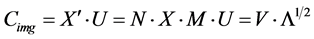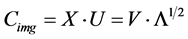 Each row of the n × q matrix Cimg again represents one full input image but now in the rotated co-ordinate system U. We happen to have chosen our example of n = 200,000 and p = 90,000 such that n > p. That means that for the rotated co-ordinate system U we can have a maximum of p columns spanning the p-dimensional space (in other words: q ≤ p). The size of Cimg will thus be restricted to a maximum size of n × q. We may choose to use values of q smaller than p, but when q = p, the (rotated) co-ordinate matrix Cimg will contain all the information contained in the original data matrix X.
