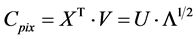 To find the co-ordinates of the images with respect to the new rotated co-ordinate system we simply need to project the p-dimensional image vectors, stored as the rows in the data matrix X, onto the unit vectors stored as the columns of the matrix U: