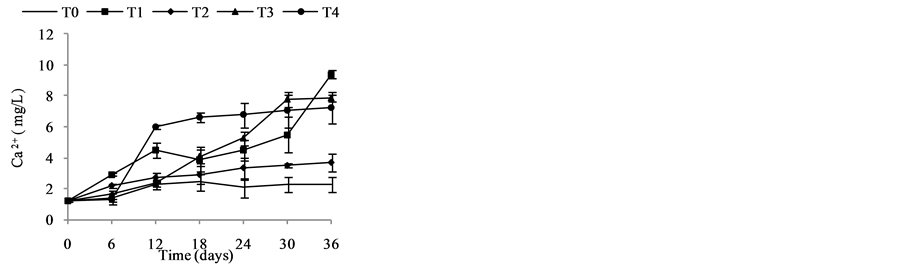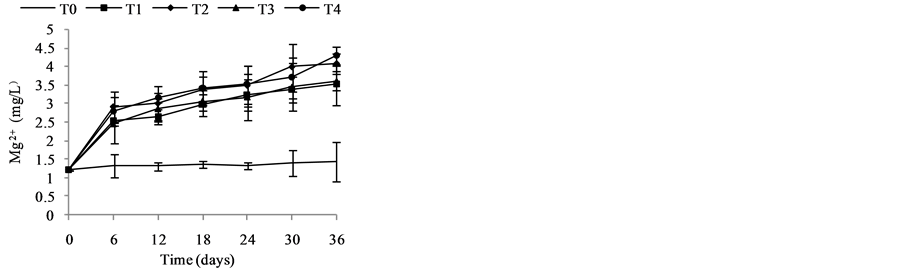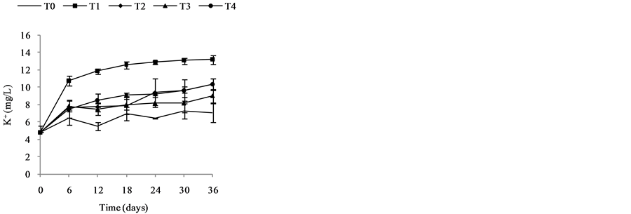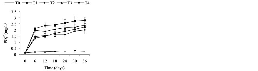 rates (Figure 3(a)) in the different treatments were increased over time with variations ranging between (0.003 ± 0.00) and (0.11 ± 0.00) mg/L ob-
