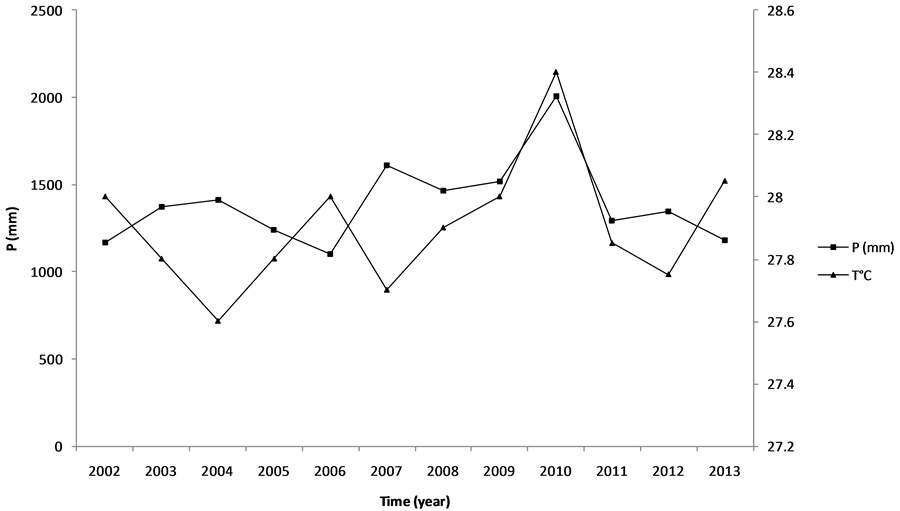 The experiment was carried out on the site of the Laboratory of Research on Wetlands (LRW) Department of Zoology, Faculty of Science and Technique of University of Abomey-Calavi, Benin (Longitude E: 2˚20'18.7"; Latitude N 6˚24'53.4"). This site is located at an altitude of 17 ± 3 m. The area is characterized by sub-equatorial