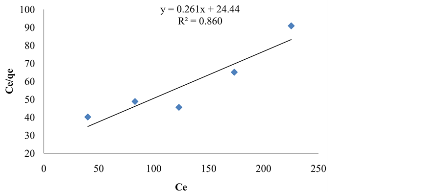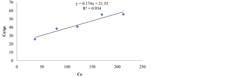 The effect of the variation of concentration of naphthalene in the effluent solution is described by using the Langmuir, Freundlich and Tempkin Isotherm models. These isotherms are graphically represented below.