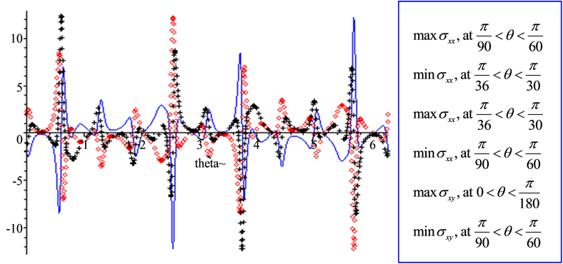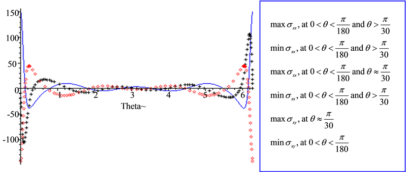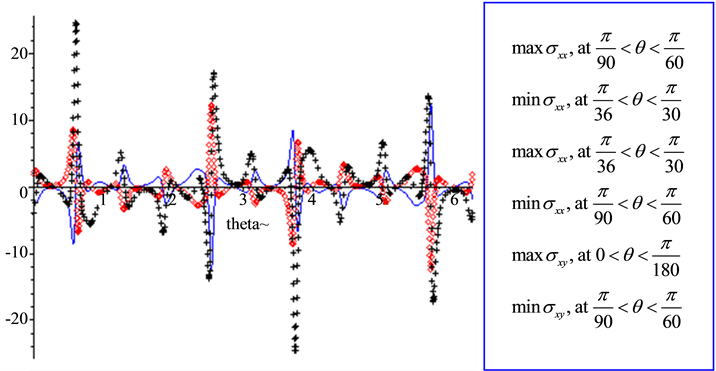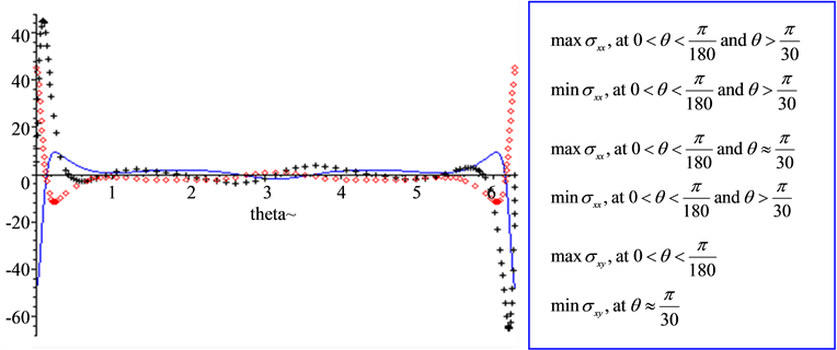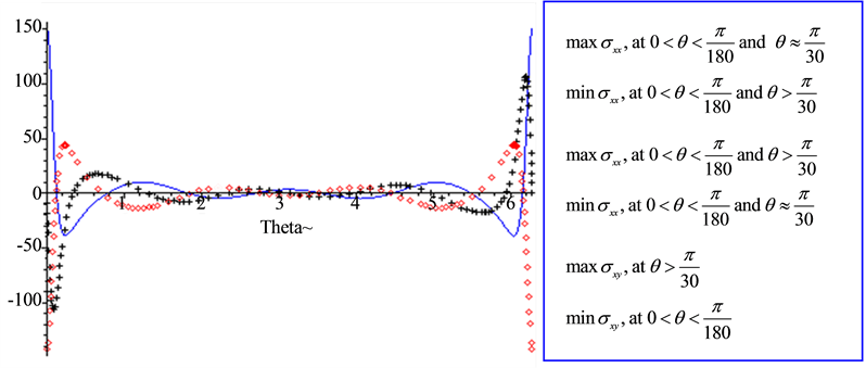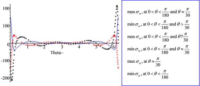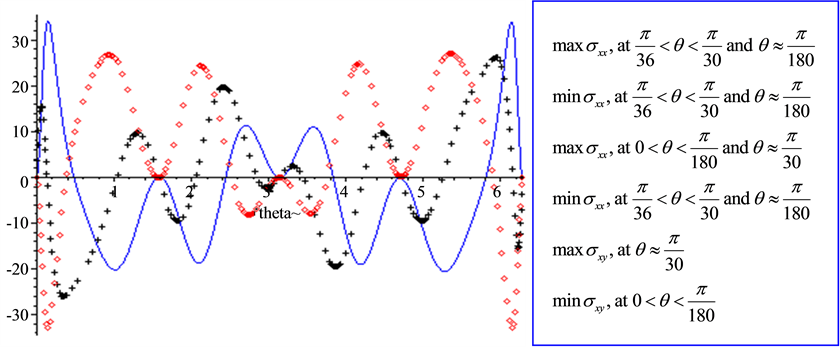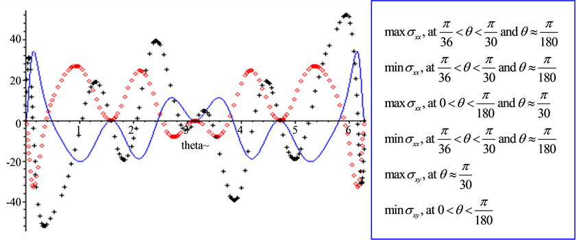 Figure 13. The relation between components of stresses and the angle made on the x-axis.