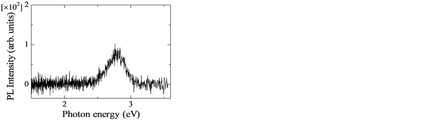 Firstly, GaN thin films were grown on several substrates, that is, a synthetic quartz glass, an amorphous-carbon- coated graphite, and a c-face sapphire single-crystalline wafer as a reference. The films were directly grown on the each substrates at the growth temperature of 900˚C, and their crystallinities and PL properties were compared. XRD patterns of the films are shown in Figure 1, respectively. In the case of the GaN thin film grown on the quartz glass substrate, only (0002) and (0004) GaN diffraction peaks relating the wurtzite-type crystal structure are observed in the XRD pattern, and it is similarly to the case of the film grown on the c-face sapphire substrate as shown in Figure 1(a) and Figure 1(b), respectively. Therefore, the thin film grown on the quartz glass substrate is at least highly c-axis preferential orientated GaN, though there was a clear difference in their crystallinities. That is, full-widths at the half-maximum (FWHMs) of the X-ray rocking curves (XRCs) of the (0002) GaN diffractions of the films were largely different as the cases on the quartz glass was 7.6˚ and on the sapphire was 0.7˚.