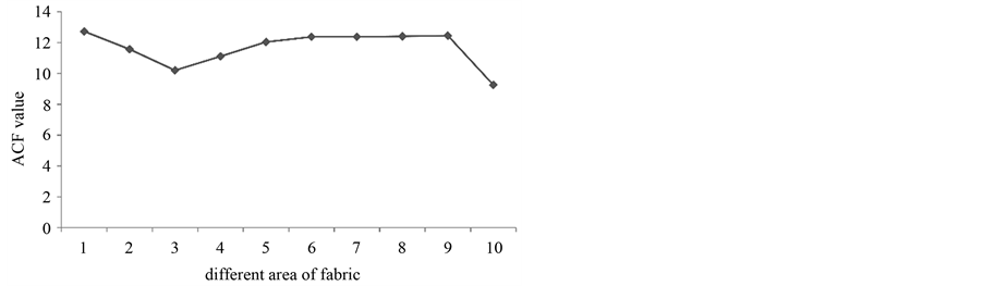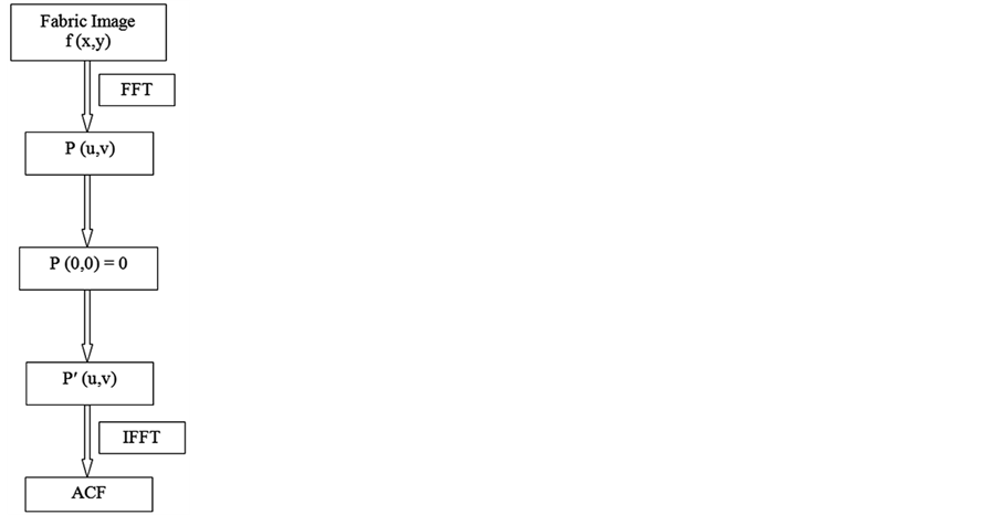 For calculating of ACF in image, at first step we calculate PS, using FFT and then using inverse FFT (IFFT), ACF will be found [18] . Figure 6 shows the flowchart to calculate ACF. In this study ACF has been used for evaluating the fabric surface irregularity. Scanned image of fabric was divided into 10 areas with similar surface area.