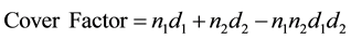 where n1, n2 are densities of warp and weft yarns, respectively and d1, d2 are diameters of warp and weft yarns, respectively.