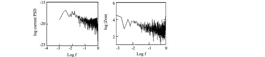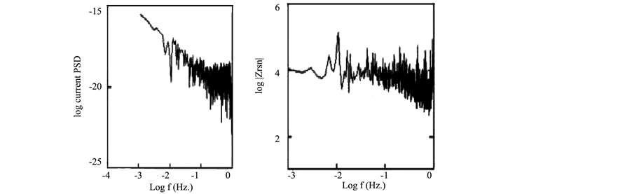 The experimental EN data were transformed from the time domain into the frequency domain by fast Fourier transform (FFT) [17] . Power spectral density (PSD) plots were obtained for both potential and current fluctuations, respectively. The spectral noise plot (Zsn (f)) can be estimated according to [18] [19] :