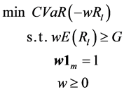 In the traditional mean-variance optimization framework, variance has been criticized because it treats downside risk and upside risk as equally important while the investors put a greater emphasis on downside risk. As a popular measure of risk, VaR (Value at Risk) has achieved the high status of being written into industry regulations, e.g., Basel II Accord. However, it can neither diversify risks reasonably nor depict tail loss precisely under non-normal distribution for lacking of subadditivity in coherent risk measure proposed by Artzner [30] . As an improved version of VaR, CVaR can be defined as the conditional expectation of portfolio loss, which is always used to depict tail loss more accurately. In mathematical terms, CVaR is presented by