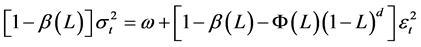 d is the fractional integration parameter and it can reflect the degree of long memory or the persistence of shocks to conditional variance, and satisfies the condition