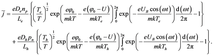are the saturation currents for electrons and holes; j0: height of the potential barrier in the absence of an electromagnetic wave;