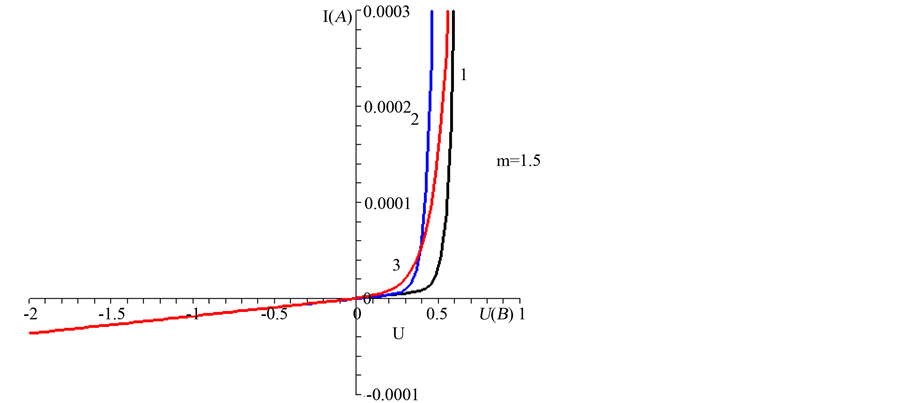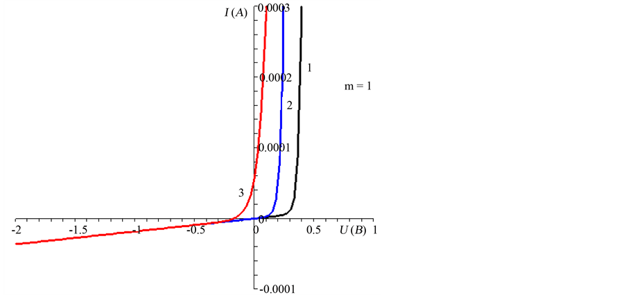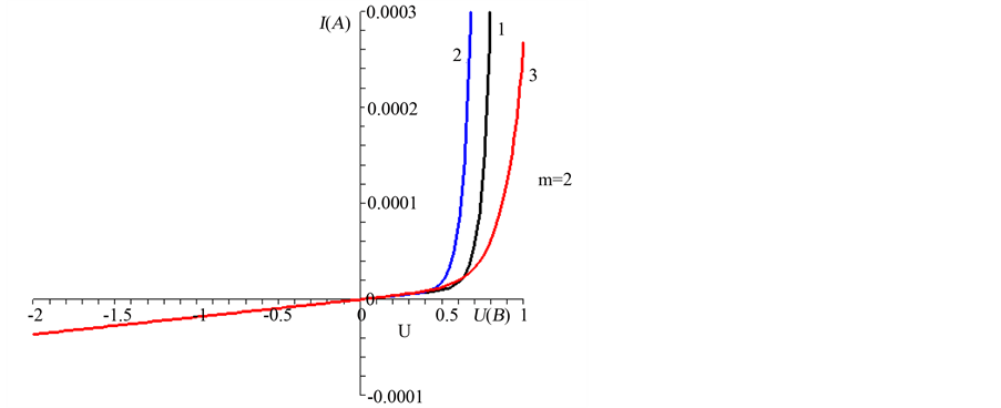 Using this formula, for different values of m we can construct CVC p-n-junction (Figures 1-3).