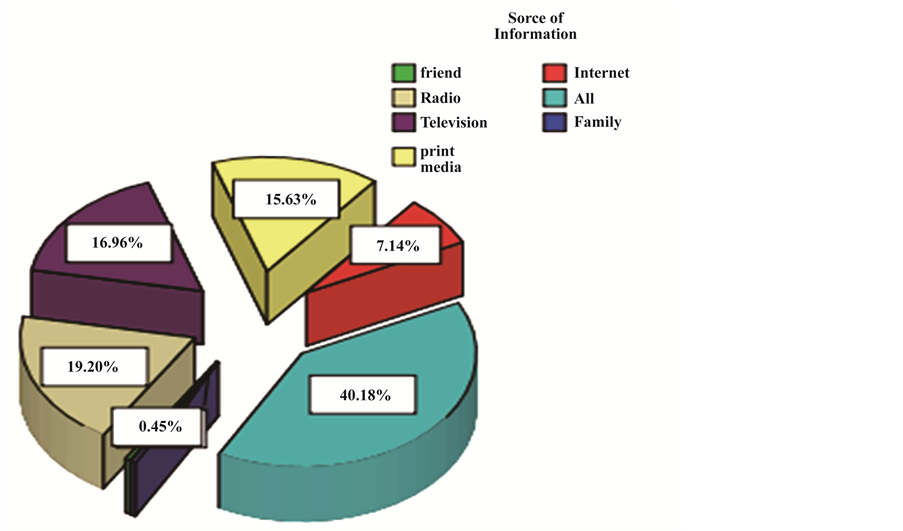 Figure 2 shows 50.63% of the respondents’ perception were developed from television, radio and print Medias whereas 40.8% of the respondents were influenced by all media types. Internet friend and family usage as a source of information was very low taking 9.29% responses only. Meanwhile, the perception can be developed in many ways but the media and entertainment business is a strong factor when it comes to influencing people’s image of different destination [54] .