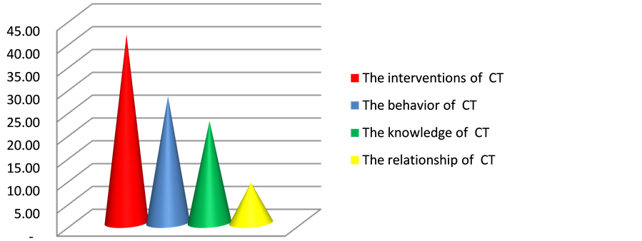 The concerns of PE-STs related to different categories defined before the training courses are in the order: The interventions of CT (41.22%), the behavior of CT (27.70%), the knowledge of CT (22.30%) and the relationship of CT (8.78%) indicated in the Figure 1.