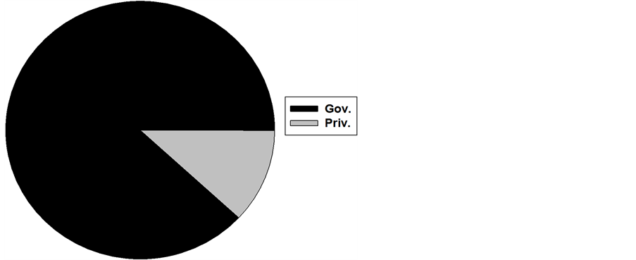 It is appears from Figure 6 that the distribution of sample according to the type of sector distributed as follows: the majority is account 88.10% are belong to government (Gov.) sector, whilst only 11.90 are belong into private sector (Priv.).